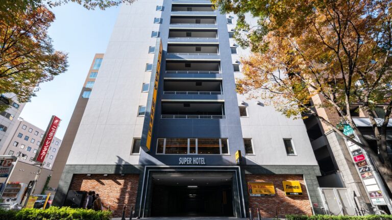 「高濃度炭酸泉 ハナミズキの湯 スーパーホテル新横浜」は、新横浜駅から徒歩圏の落ち着いたエリアに建つチェーン系のホテル。