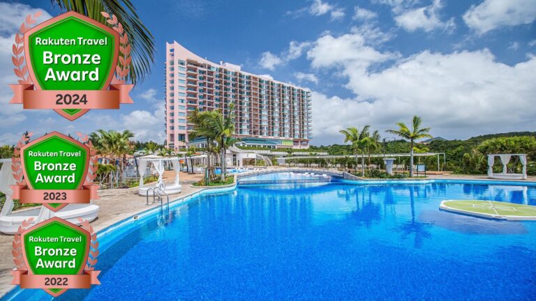 県内最大級スライダー付プール/全客室ラウンジ付/ホテル日航アリビラとの相互利用あり/那覇空港より国道58号線を名護方面へ読谷村伊良皆交差点を残波岬方面へ。車で70分。